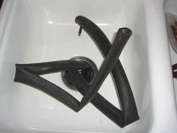 A menos que tenga la desgracia de usar una llanta Slime. Limo neumáticos tienen una baba verde, bien, en los que pondrán el sello de pinchazos pequeños orificios en el tubo. Lo apesta y deja una costra en el tubo entero. También bastante la Baba no seco, por lo que cuando corte el tubo se me cayó un buen charco de él en el piso. En mi frustración me olvidé de tomar una foto del Charco. Perdón por eso, su bienvenida a reírse de mí de todos modos.