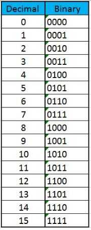 El programa del contador binario aplica 5V (alto) y 0V (bajos) niveles a cuatro de los ocho LEDs para generar todos los patrones de bits posible 16 para los valores binarios entre 0000 y 1111. En esta secuencia el bit menos significativo (LSB) está representado por el LED de la derecha y está conectado al pin 17. Cada bit sucesiva moviéndose de derecha a izquierda tiene un valor de lugar que es dos veces la parte anterior (1, 2, 4, 8) para que el patrón de bits para el valor entero de 13 es 1101 (8 x 1 + 4 x 1 + 2 × 0 + 1 × 1 = 8 + 4 + 0 + 1 = 13).