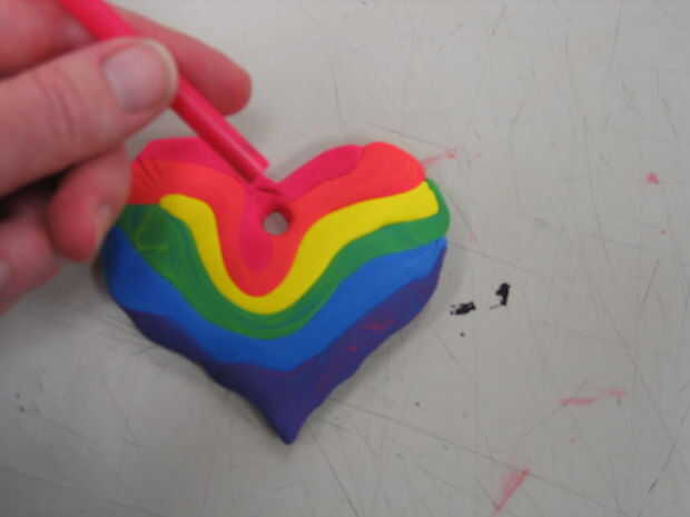 Usar una paja para crear el agujero-muy fácil y rápido funciona bien con arcilla regular también