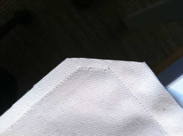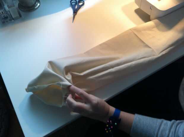 Después del corte, vuelva. Ahora se enfrentarán el lado bonito de la tela hacia fuera, y su lado feo estará en el interior.