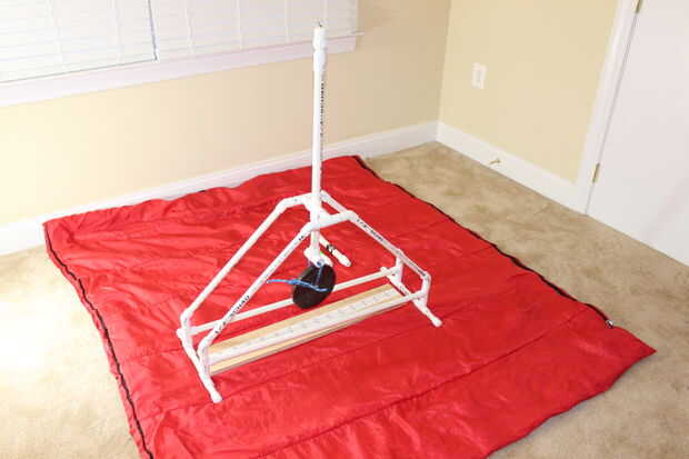 Los niños reciben los materiales y el trebuchet de dibujo (ver enlace en la descripción). Toma al medio grupo (niños de 2 a 5) unos 10 minutos a Asamblea el trebuchet. Hay dos variables en la configuración. El primero es el brazo de lanzamiento – tres opciones están disponibles: corto, mediano y largo. La otra variable es la altura del peso. Esto se controla por la distancia de la regla en la tabla en la base de la trebuchet. Los datos se recogen para las tres longitudes del brazo en toda la gama de altura peso (ver enlace a hoja de cálculo). Después de que los datos se recogen, se celebró un concurso para golpear un objetivo (cubo, 20 pies de distancia).