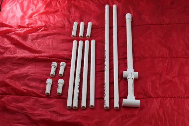 Corte el tubo de PVC a la longitud que se muestra en la lista de materiales