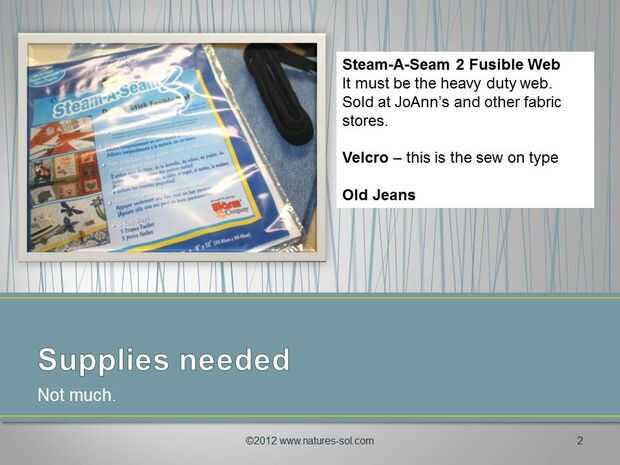 Se trata de una forma interesante de usar ropa vieja de mezclilla y tela desechos... o compró la tela del dril de algodón (si usted está queriendo un bonito regalo para alguien). El dril de algodón debe ser al menos de 4" de ancho. No tienes que util
