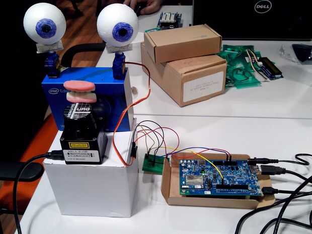 Las bolas de ojo (dentro de los servos) fueron Unidas usando una doble cara cinta adhesiva a la caja de Edison, y también, los dientes fueron atados a esta caja debajo de los ojos.