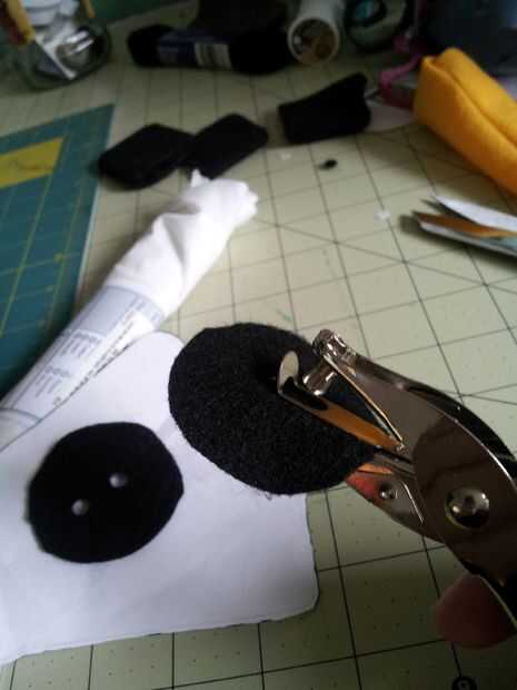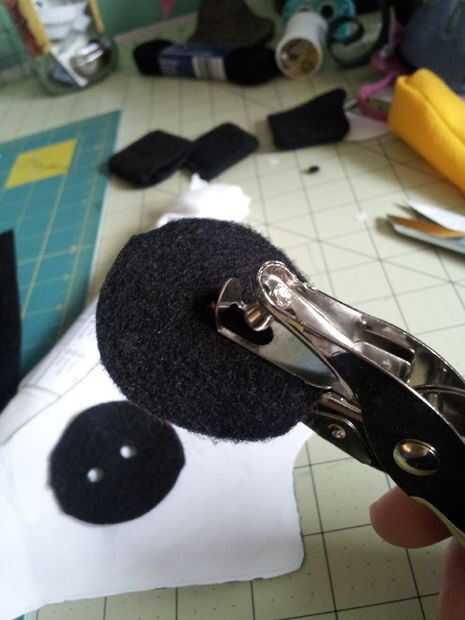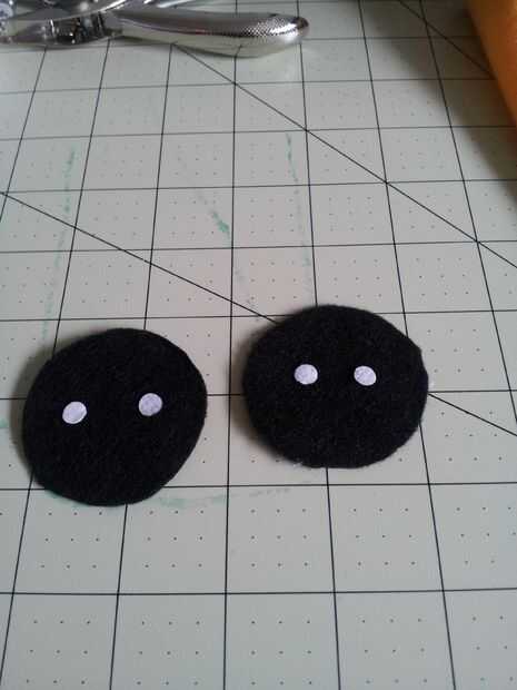 Ahora para empezar la diversión decoraciones de la parada de proyecto. Para los ojos me corta 2 círculos y utilizar una perforadora para hacer los agujeros para que se vea como tiene ojos de botón.