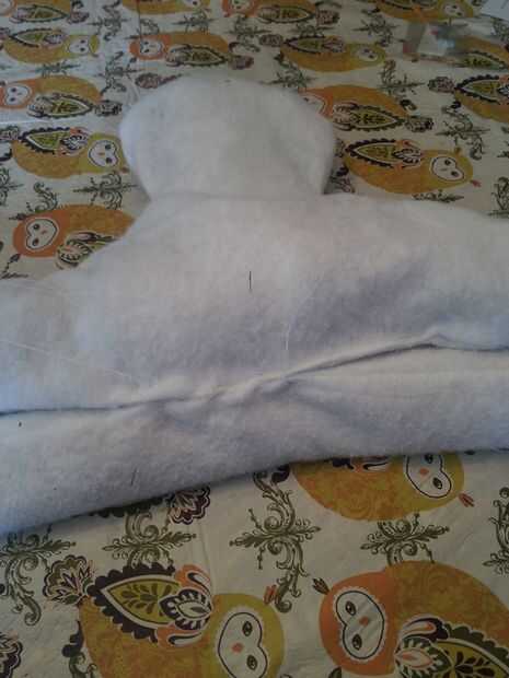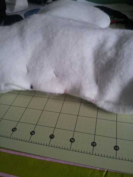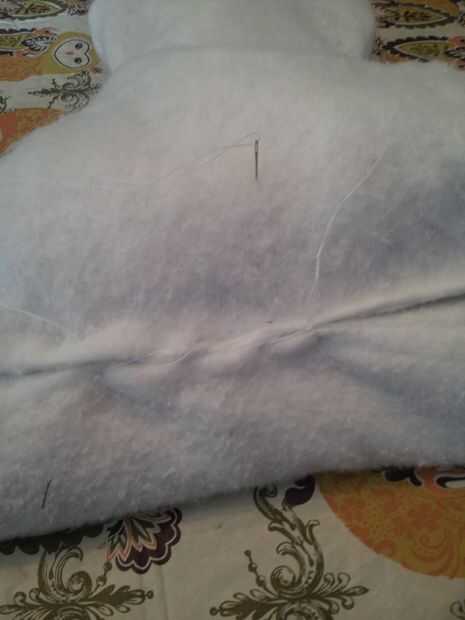 Ahora es el momento para conectar tus 2 piezas. Pellizcar las 2 costuras (la parte inferior del muñeco de nieve.) y la costura de la parte de la parada de proyecto Utilice la aguja de la mano y coser a lo largo de las 2 piezas para conectarlos. Los alineados y comencé en el medio y había trabajado mi manera. Entonces hizo el otro lado. Para un aspecto más redondeado en los 2 extremos agarré la parada del punto y viró hacia abajo con un par de puntadas.