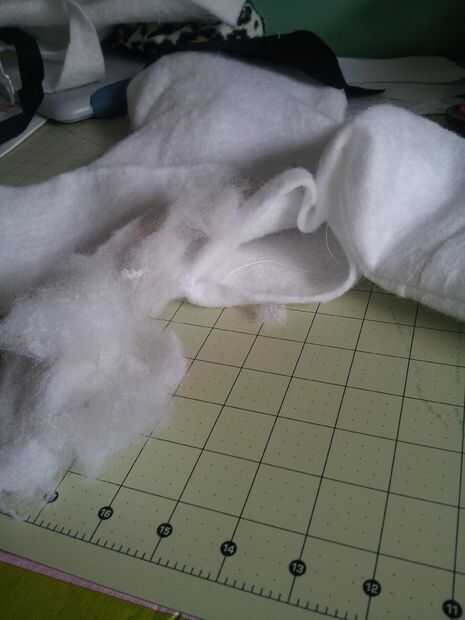 Coser todo alrededor excepto deje un espacio de 5 pulgadas en la parte inferior. Hacia adentro hacia fuera y ligeramente rellenar con su relleno de fibra. Quieres más plana como. una vez que lograr el aspecto deseado. Coser el espacio cerrado.