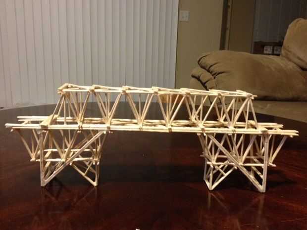 Cuando termines juntando todas las piezas tuyo debe este aspecto. Este particular puente fue capaz de mantener las máxima 30 libras.