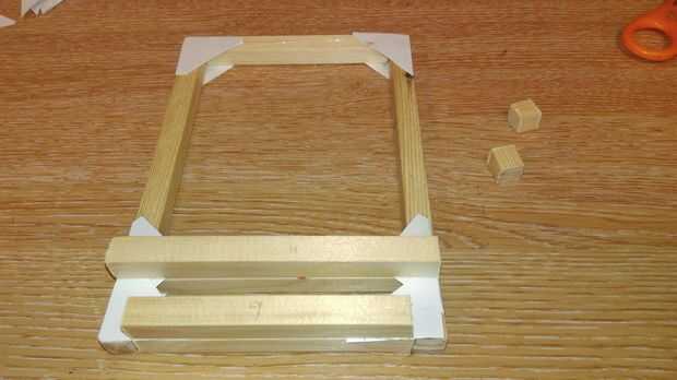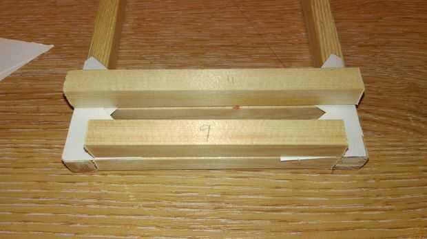 Coloque las piezas como en las fotos con una separación de 1 cm entre las piezas de 9 cm de dos. Puede utilizar un pedazo de madera de desecho como espaciador entre ellos hacer paralelo.