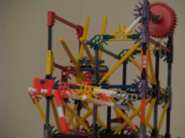 aquí está, mi máquina nueva (tercera) de la bola de K'nex. Este es algo más difícil que los otros. Algunas personas han solicitado que hacer instrucciones, así que sin más esperar...Proyecto IMMEUBLE!Piezas:Gris de las barras: 5Barras rojas: 41Amaril