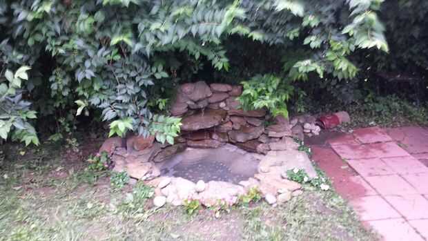 Así que decidí que quería escuchar correr el agua mientras me sentaba en el patio. Pero no quiero pasar un paquete de dinero. Decidí intentar hacer económicamente posible. Pasé unos $30.00 y mucho trabajo para todo. Termino con esto. ¿Qué te parece?