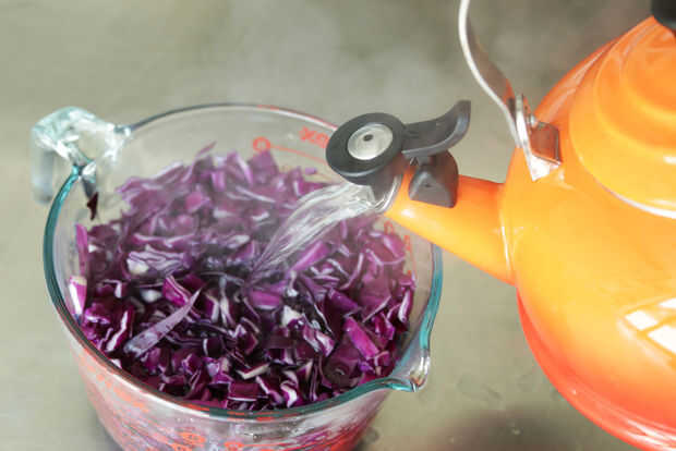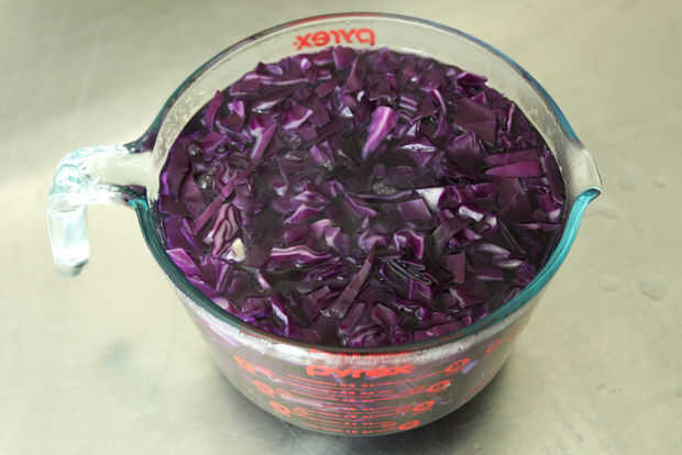 Hervir unas cuantas tazas de agua y luego Vierta en el vaso hasta que la col está completamente saturada y el nivel del agua alcance la parte superior.