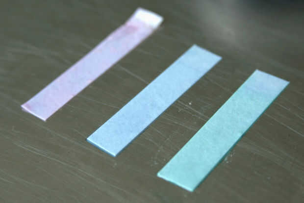 Cortar el papel en pequeñas tiras y luego sumergir las tiras en la solución. Ahora están listos para ser usados para probar que un producto químico cae en la escala de pH.