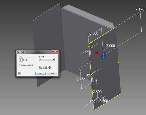 Crear un dibujo 2D en el lado de una de las pestañas, crear un conjunto de puntos para crear los orificios laterales y crear un círculo para cortar el orificio grande del aire. Una vez completa usar "Cortar" para crear el gran orificio de aire a través de todo.