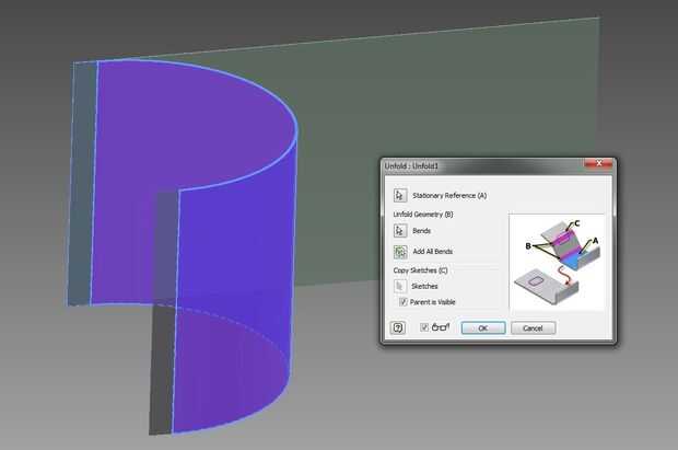 Hay que desplegar el elemento para realizar un trabajo en el patrón plano. Utilice el comando de "Desplegar".