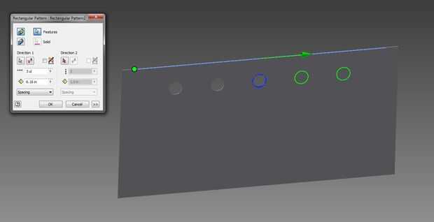 Crear 2 patrones para conseguir la cantidad necesaria de agujeros y espaciado.