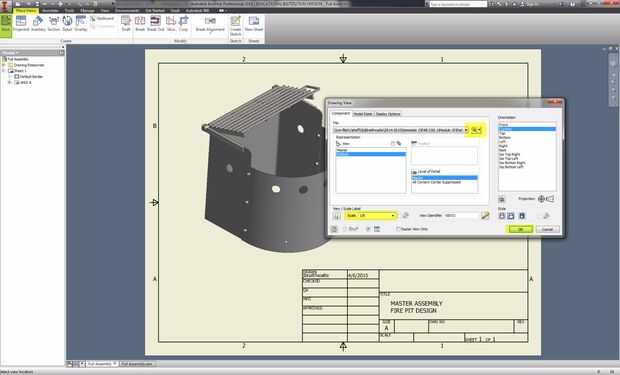 Seleccione la ficha "Vista de lugar" y "Base". Seleccione el botón examinar, como se muestra, para ubicar el .ipt .iam y .ipn que desea colocar para anotación. Una vez haya encontrado el objeto que se desea mover el cursor fuera del menú para el espacio de papel y podrás ver una vista previa de la colocación. Modificar la escala y la orientación que necesita y seleccione "OK". Una vez completado te puede arrastrar la vista a una ubicación deseada y realizar más ver proyecciones, secciones y anotaciones. Estas estrategias serán cubiertas en el paso final instructivo.