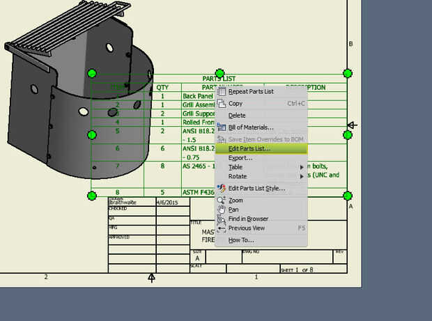 Ahora editaremos la tabla para mostrar lo que deseamos. Seleccione la tabla con un todo y luego haga clic derecho y seleccione "Editar lista de piezas"