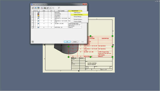 Ahora estás en el editor de lista de piezas. Haga clic en una de las celdas y seleccione "Selector de columna".