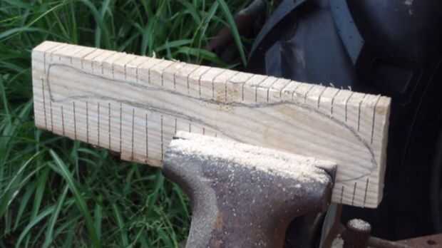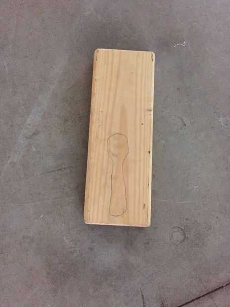Comenzamos usando el aserradero para cortar un rectángulo de madera de una pieza de redwood. Luego utilizamos una sierra de mano cortar las líneas de la madera hasta el trazo de la cuchara de manera que podríamos cincel las piezas hacia fuera. Después de esto nos cincelado a los cuadrados uno por uno para obtener la forma de la cuchara. Hicimos esto para todos los tres ejes de la cuchara para hacer los bordes, asa y taza de la cuchara.