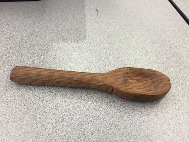 Después nos cincelado todo la curva de la cuchara, utilizamos papel de lija y un disco de lija para suavizar los bordes ásperos y golpes causados por el cincel.