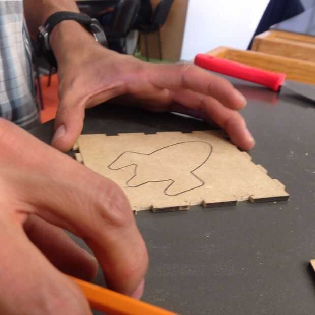Ahora vamos a marcar una cara de tu caja con un diseño, de preferencia un diseño en silueta, yo aumentando el logo del MakersLab, tu puedes hacer el quieras.