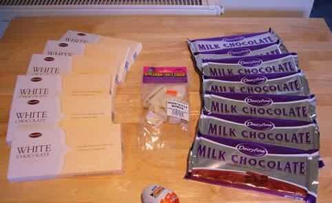 barras de 6 x 200g de chocolate blanco (cualquier chocolate hará realmente)