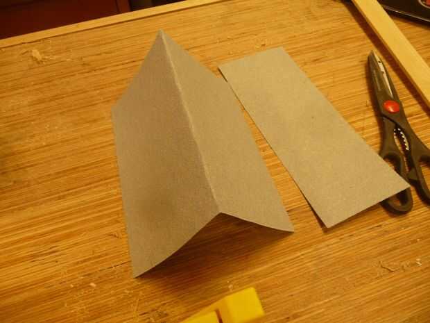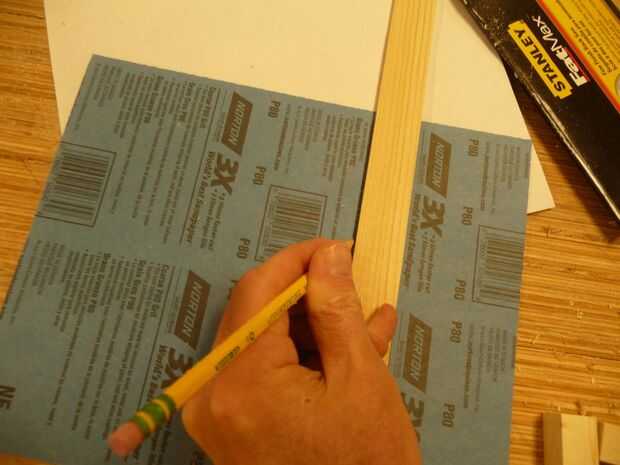 La cubierta es sólo un pedazo de papel de lija cortado a la medida y doblado por la mitad. La razón por la que se hace ahora es para poder usar el extra a la arena las piezas después del corte. A utilizado 80 grit ya aunque era un buen color para un techo. Deje que el niño elija el color. Papel de lija es 11" por 9" y desea que la pieza del techo para ser 7-1/2" por 9". Mida y marque 7-1/2" y corte con tijeras. Una vez más, el extra es lijar los cortes en la madera.