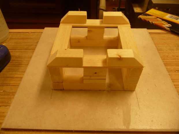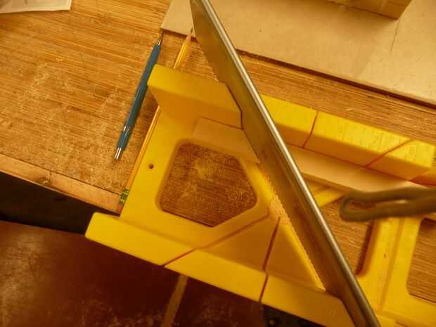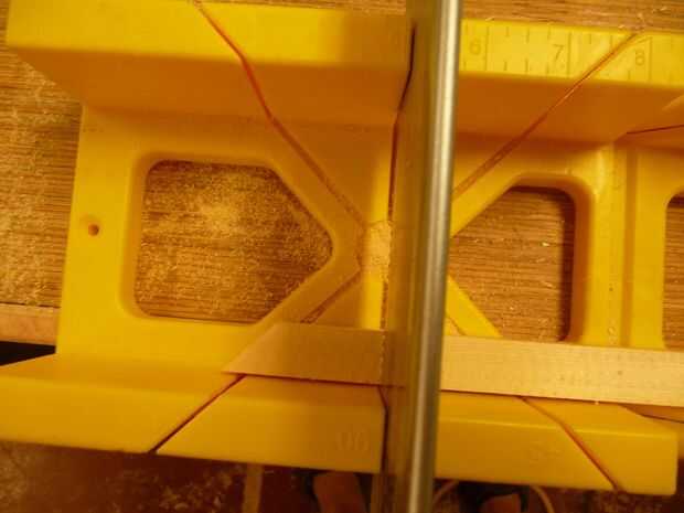 Para la quinta capa necesita cortar, cuatro cónicos solo 2-1/4" de largo. Empezar por la pieza de medición y corte de bisel. Para la siguiente pieza, medir desde el bisel y vio un corte recto. Por lo tanto técnica permitirá un uso eficiente de materiales y cortes. Arena corte los bordes y pegamento a la cuarta capa como se muestra en la foto. Ahora es evidente que son dos ventanas arriba.