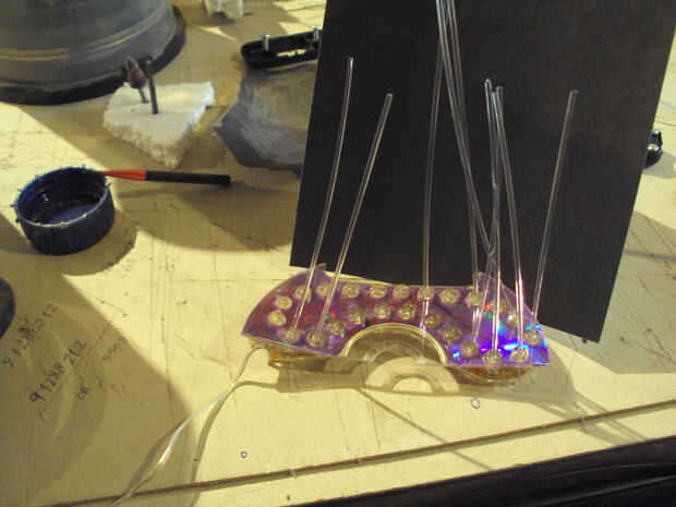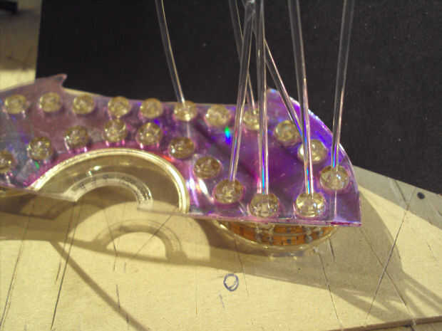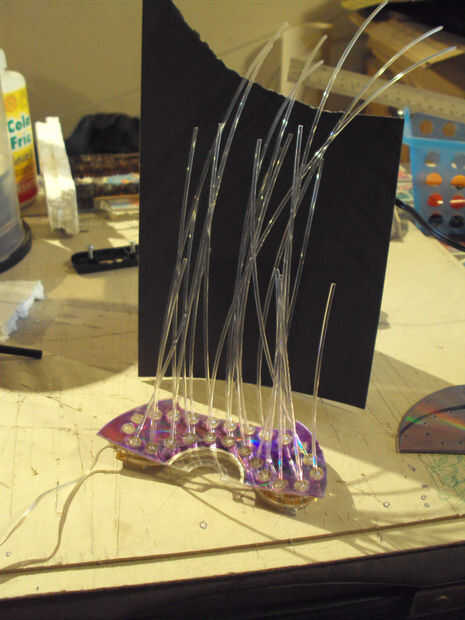 Una vez you´ve cortar las fibras a la longitud deseada puede empezar a enchufarlos a los agujeros de la tira de LED hecho en el paso 8.