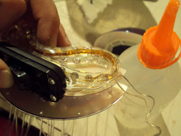 hacer propia lámpara de tiffany de miniatura para iluminar el teclado de tu PC con estilo, de una pelota de tenis de mesa, algunas monedas antiguas y el extremo de metal de un pincel de artistas. Es muy fácil y rápido. Además una vez hecha la base, c
