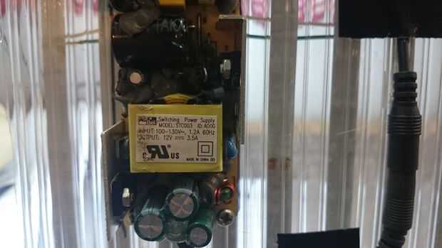 Estados de fabricación Compro documentación suministrada que necesita para 1 tira en longitud total (16,5' o 5 metros) una fuente de alimentación de 5 amperios de 75w. Utilicé una fuente de alimentación rescatado de un viejo router inalámbrico (el unico que no me arrepiento sobre el uso de Comcast). También he añadido un interruptor del lado de la oferta de la fuente de alimentación. Esto fue así cuando desactivar el dren de LEDs los condensadores. Esta fuente de alimentación, se produce algo de calor así que opté por no para cubrir todavía.
