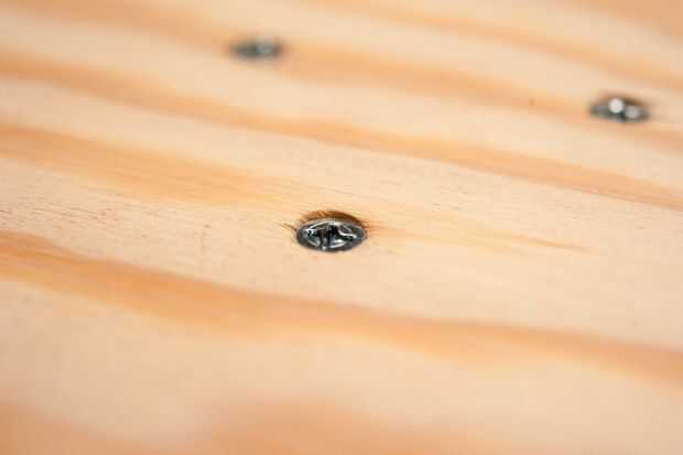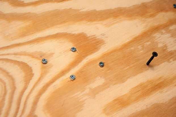 • Taladre los agujeros y atornillar los tornillos de madera en la tabla superior y marco, asegúrese de que los tornillos ligeramente debajo de la superficie del fregadero (madera contrachapada es relativamente suave para no utilizar demasiada fuerza y hundirse muy profundo).