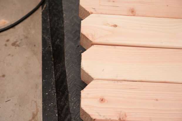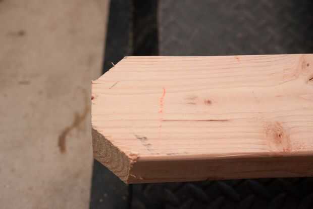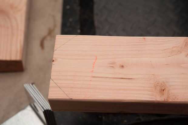 Mida y corte 1 "x 1" en un borde para dar espacio para la pierna cuando en la articulación.