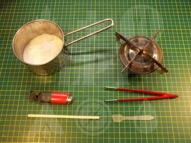 1. Vela de cera (cera de parafina, cera estearina o abejas) - se puede reutilizar la cera vieja para esto - se debe utilizar suficiente cera para permitir el lápiz al ser sumergido completamente.