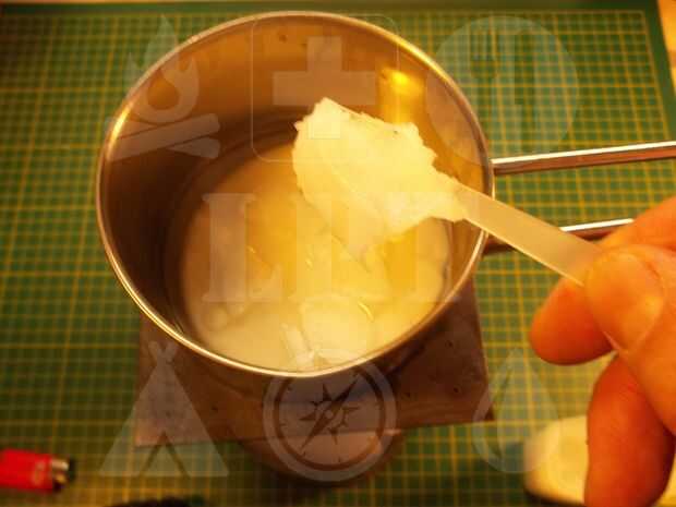 2. Añadir en algún lugar entre 1/5 a 1/4 de vaselina a la cera ((frente a la masa total de la cera)