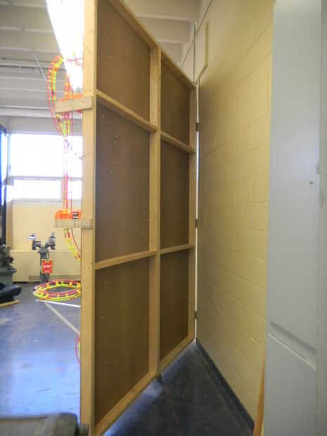 - 3 bisagras de alta resistencia y algunas ruedas le permitirá swing su pared k'nex hacia fuera así que es fácil de instalar los componentes y realizar cambios. Asegúrese de que atornille a las vigas o utilizar anclajes si está atornillado en un muro de bloque.