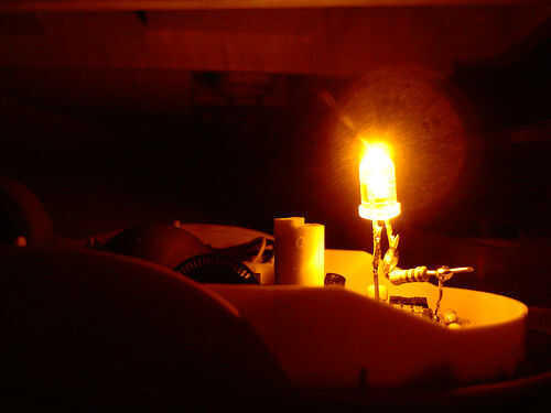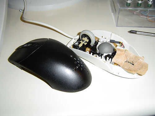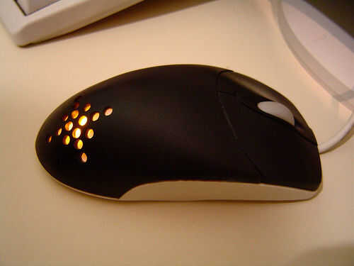 Después de algún tiempo, decidí pintar mi ratón negro, le ve mucho mejor y cambiar el led a algo más fuerte, un poder amarillo led, funcionado de maravilla. Así que este es el resultado:
