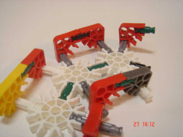 aquí están las instrucciones sobre cómo hacer la máquina más pequeña de la bola en instructables.Paso 1: Lista de piezasLista de piezasBarras deRojo - 1Amarillo - 12Azul - 26Blanco - 12Verde - 30ConectoresAzul - 15Amarillo - 10Violeta - 27Rojo - 2Gri