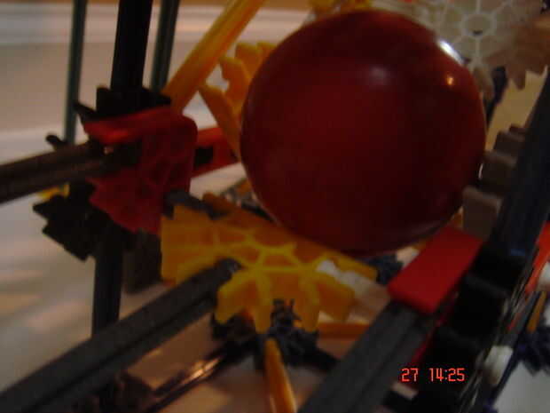 estas son las instrucciones de mi elevación de máquina de bolas nuevas e innovadoras, que está en la página de Shadowman39 en bola máquina ascensores. Se utiliza una llanta de la rueda invertida, con interiores 'bolas', que bola la bola como entra en