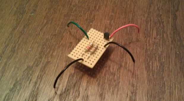Para empezar esta parte, nosotros debemos rápidamente de alambre el circuito dos juntos. Tienes un 5vDV plomo en el video amplificador que va a los 5v en de la fuente de alimentación. En esa Unión, palillo un tercer cable, que irá directamente al tercer agujero en la placa. Usted puede también atar con alambre que el suelo conduce a la Junta. Si opta por añadir el arrary de LED, ahora es el mejor momento para colocarlo en.