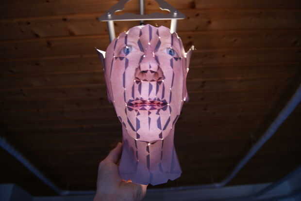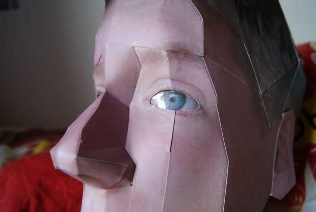 Se ve mejor cuando imprimir los ojos dos veces, corte en la cabeza original y pegar ojos nuevos en los agujeros. Se ve mejor cuando los segunda ojos se cubren con cinta, para que queden brillantes.
