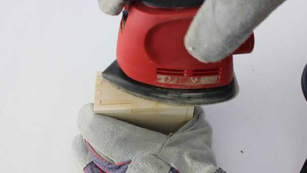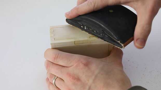 En la mayoría de los casos, los bordes y las juntas no encajan perfectamente. También puede haber burbujas de pegamento asomando de las costuras. Por lo que es siempre una buena idea de la caja de toda la arena. Esto suavizará los bordes ásperos e incluso hacia fuera de las articulaciones. Si usted sólo tiene que lijar un poco, entonces usted puede conseguir un trozo de papel de lija y un bloque de lijado. Pero si usted tiene un montón de lijado para hacer, recomiendo usar una lijadora eléctrica.