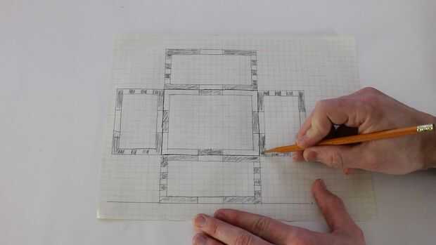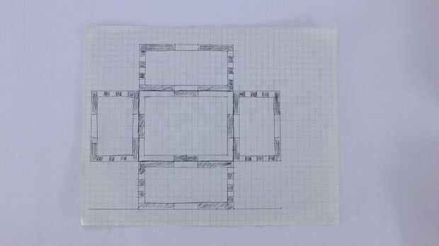 Con esta información, era entonces capaz de calcular el tamaño de cada pared y cómo se encajan entre sí. Me pareció que la manera más fácil de hacer esto sacar en una hoja de papel cuadriculado.