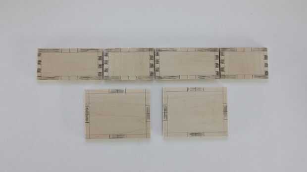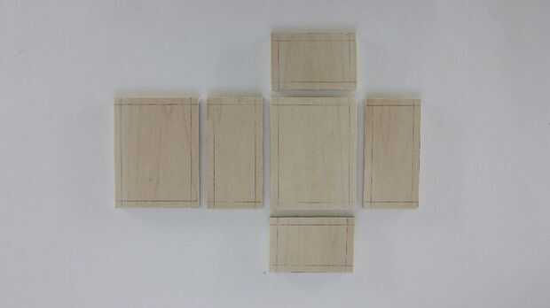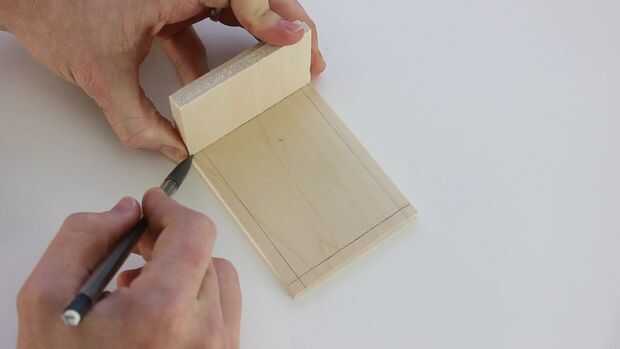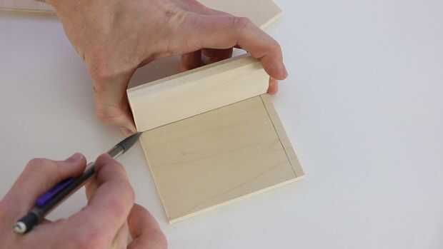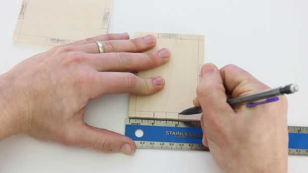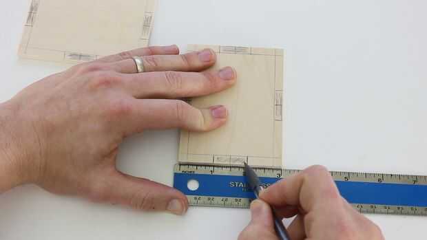 A continuación se que necesita para marcar los contornos de cortar las juntas. Empezar marcando una línea en el exterior que se compensa por el espesor de una pared del borde. En este caso fue de 1/4." La forma más fácil de hacer que esta línea es poner uno del lado de la pieza en la parte superior y alinee con el borde. Hacer esto para todas las piezas.