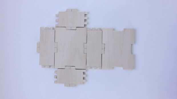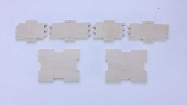 Al usar una sierra para cortar cuidadosamente las regiones sombreadas en cada pieza. Una sierra de calar puede hacer un trabajo rápido en esto. Pero si usted prefiere trabajar más lentamente y con precisión, puede utilizar una sierra de mano. Una vez que todas las piezas se recortan, libremente que encajen juntos para asegurarse de que todas las uniones se clasifican correctamente. Si no se ajusta a un conjunto, use su sierra o papel de lija para afeitar hacia abajo un poco.