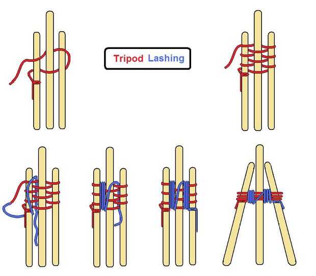 Este sitio web lo puede explicar mejor que yo: http://www.bsatroop542.org/Knots_TripodLashing.htm