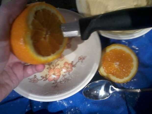 En el campamento que voy a obtener mi scouts a la restante de jugo de naranja y la pulpa en un recipiente, que tamizan y la bebida como jugo de naranja. (AHA no se va nunca supongo que están comiendo fruta!!!)