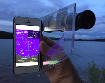 Al principio traté de usar la cámara del teléfono pelado como dispositivo señalador. Pero teléfono cámara es demasiado gran angular. Incluso con el teléfono en el zoom máximo, los objetos celestes aparecen pequeños y difíciles de centro. La cámara no puede centrarse en las estrellas débiles. El teléfono carece también de inercia para ser un sextante. No funcionaba.