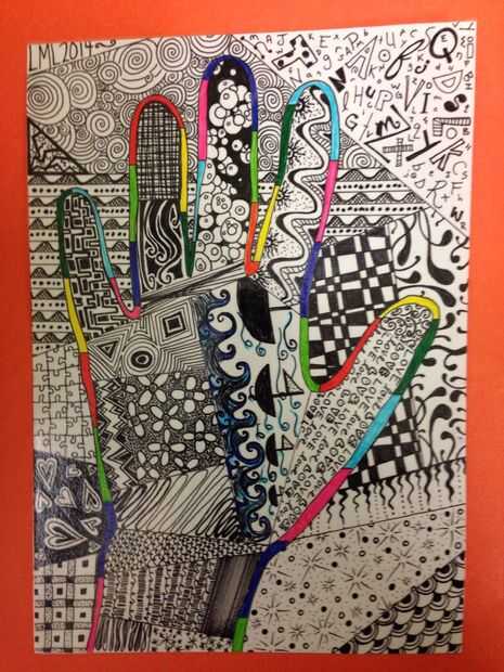 Para lograr un nivel 4, ir más allá, rellenando el fondo con Zentangles. Asegúrese de que su silueta se define aún con una frontera negrita